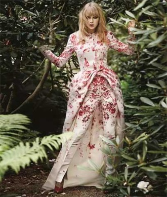 这条红色蔷薇连衣裙,放在欧美叫“vintage”,放在中国大妈的衣橱里叫“布拉吉”。觉得太老气、太艳俗?霉霉总是有法子化腐朽为神奇,红配绿的大胆“乡村撞”看起来很有个性,配上她的迷人金发,美得出乎意料!
