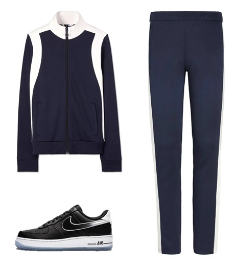 照片里她穿的上衣和裤子来自Tory Sport by Tory Burch,鞋子是Nike Air Force 1(此处我的疑惑:AF1能穿来跑步?!
