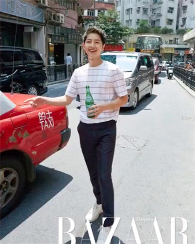 新剧席卷东亚,宋仲基连上五大封面。在最新的Harper's Bazaar 韩国版5月刊封面中,你们的老公“柳时镇”脱下军装演绎各大品牌新季时装,发型凌乱,轻松穿出悠闲时尚感。