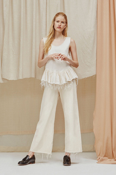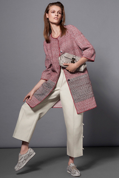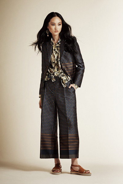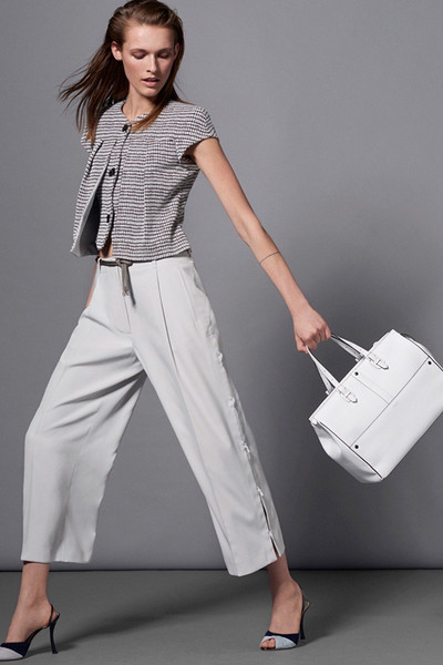 2016春夏系列中,设计师们对阔腿裤的长度、腰线甚至是裤管的宽度都进行了更加细致的划分。像Adam Lippes、Altuzarra、Balenciaga、BCBG Max Azria及Valentino等品牌设计师,都青睐及地长度,这一巧妙的“障眼法”令双腿在视觉上无限延长,与此同时腰线的提升,让及地长度变成较矮女生也可轻松驾驭的单品。部分设计师则为了配合春夏季的温暖,选择用九分及七分的长度来修饰双腿,裸露部分脚踝,令女性身躯更显纤细。Acne Studios的三D印花阔腿裤是当之无愧的度假首选;而Alberta Ferretti的民族风印花,则能从容应付从职场到日常休闲等各种场合;Creatures of Comfort的破损边设计,为阔腿裤融入了街头时髦感;Giorgio Armani的侧边系带设计,让我们看到了这个极擅长裤装剪裁品牌的突破。