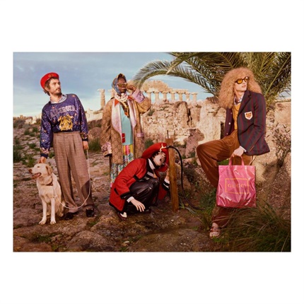 Gucci 2019 早秋广告形象大片,呈现了西西里塞利农特遗址公园的残垣断壁间,一群不羁青年的狂欢宴会。