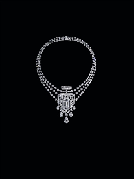 由此,这件非凡卓绝的作品,将永远闪耀于香奈儿臻品珠宝的历史中,象征着芳登广场与 5 号香水之间的永存的联结。